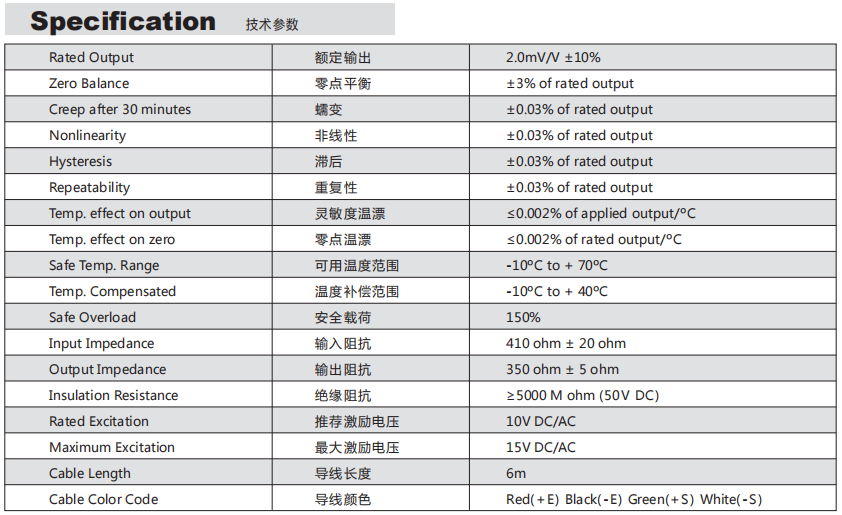 1.高精度稱重傳感器、天平級別稱重傳感器、小型稱重傳感器主要特點(diǎn):(1)精度高,抗偏載能力強(qiáng),*小量程300g;(2)單