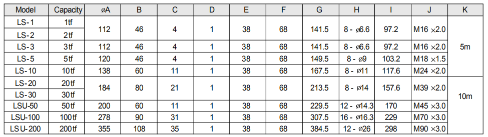 額定型號: LS-1T,LS-2T,LS-3T,LS-5T,LS-10T,LS-20T,LSU-50T,LSU-100T