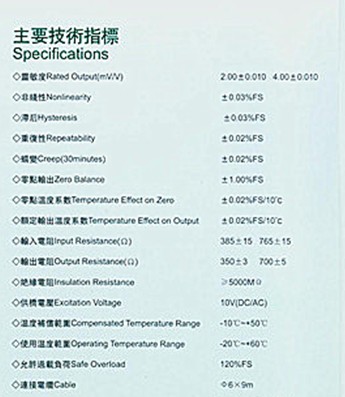 美國(guó)AC GY-1-50T稱重傳感器技術(shù)參數(shù):