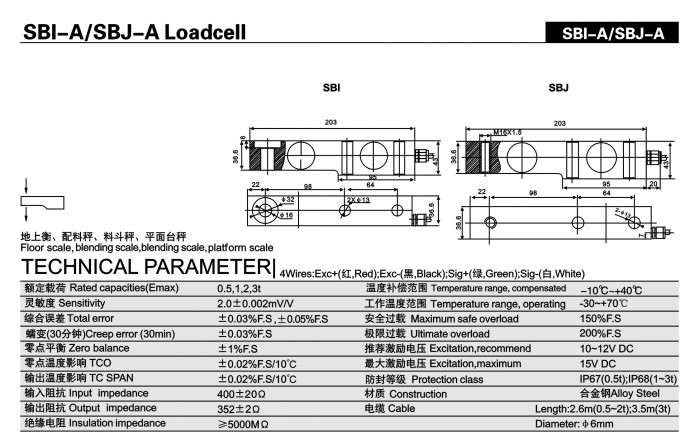 美國(guó)SUNCELLS SBJ-3T稱重傳感器中文參數(shù):