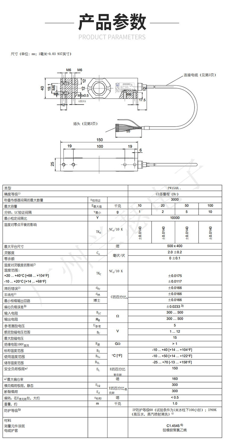 德國HBM PW15AHC3/100KG稱重傳感器產(chǎn)品參數(shù):