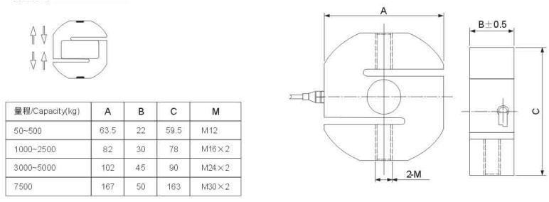 鋼制S型稱重傳感器,測(cè)量方式為剪切應(yīng)力測(cè)量,承受拉、壓外力均可,輸出對(duì)稱性好,結(jié)構(gòu)緊湊,安裝方便