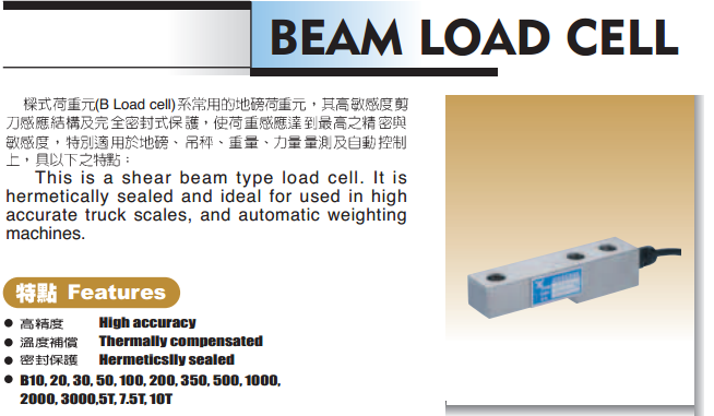 臺灣JIHSENSE B(LOADCELL)系列型號 Type: