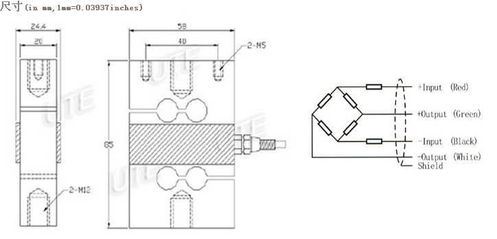 臺(tái)灣UTE UNS稱重傳感器尺寸圖:
