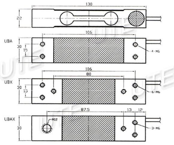 臺灣UTE UBA稱重傳感器尺寸圖: