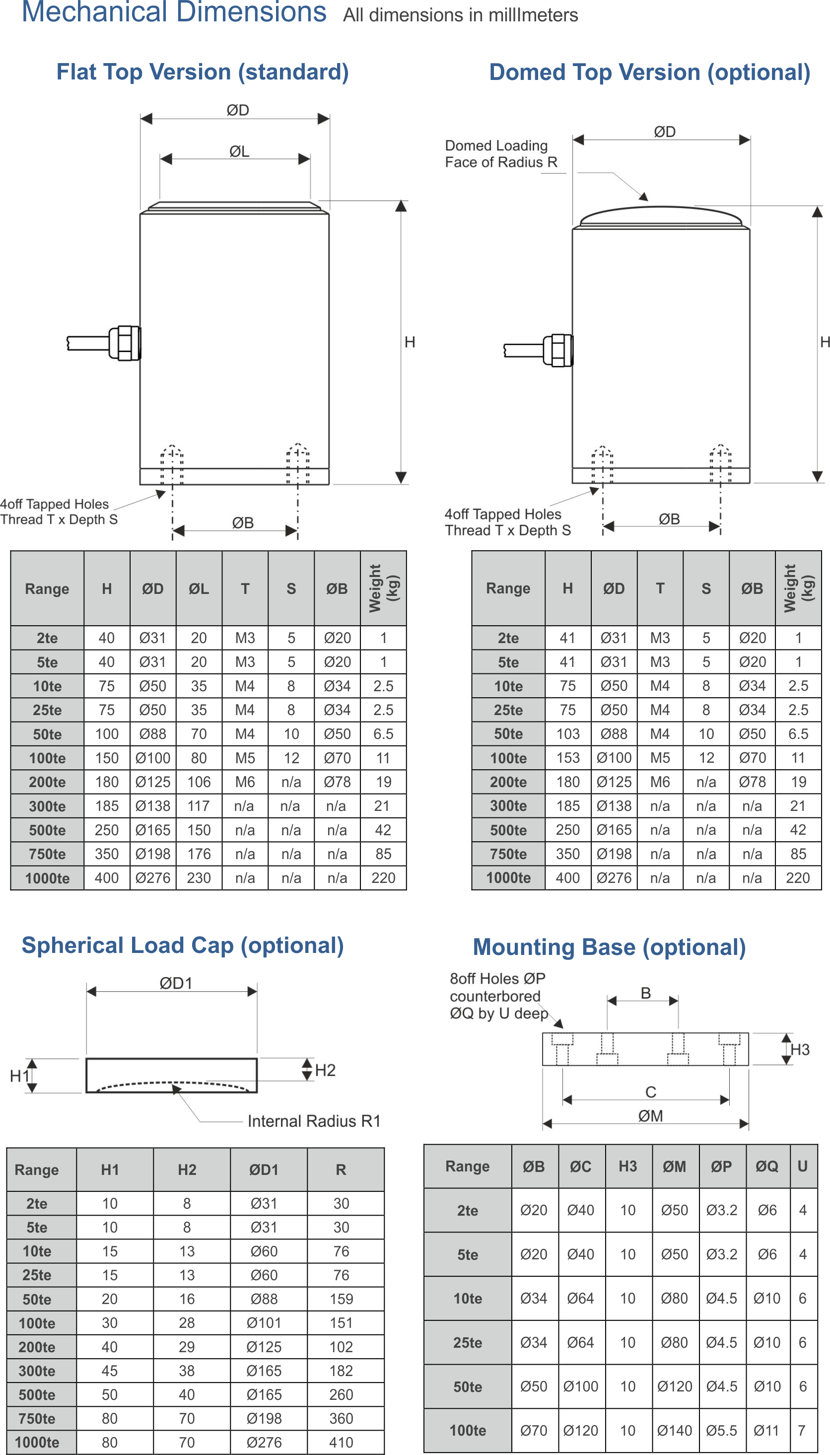 The LCM series of Compression Load Cells are designed for general use and are suitable for use in laboratories or in permanent outdoor installations.