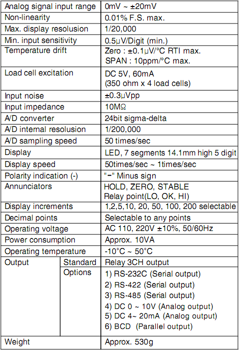 韓國(guó)Bongshin BS-205稱(chēng)重儀表技術(shù)指標(biāo)