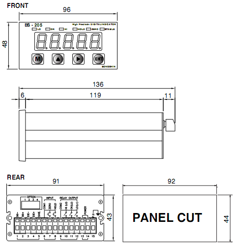韓國(guó)Bongshin BS-205稱(chēng)重顯示儀表安裝尺寸