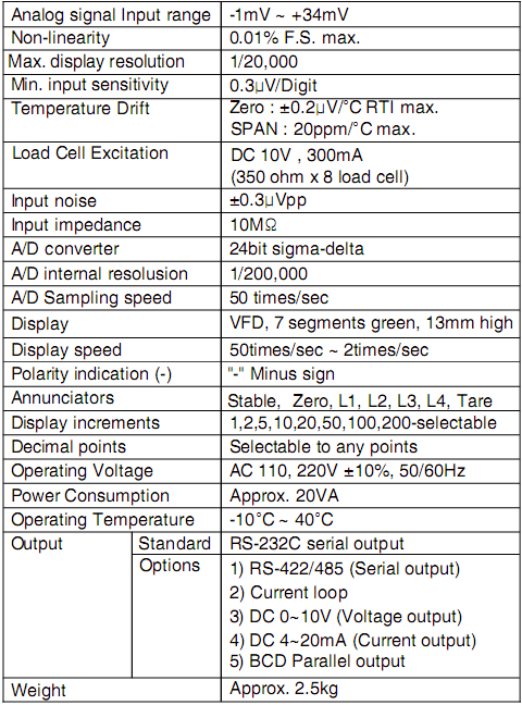 韓國Bongshin BS-7300稱重儀表技術(shù)指標(biāo)