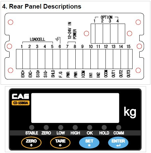 韓國(guó)CAS CI-1580A稱(chēng)重儀表面板說(shuō)明