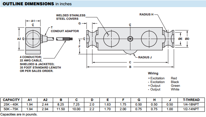 65040W美國STS,SENSORTRONICS 65040W稱重傳感器產品技術參數和尺寸: