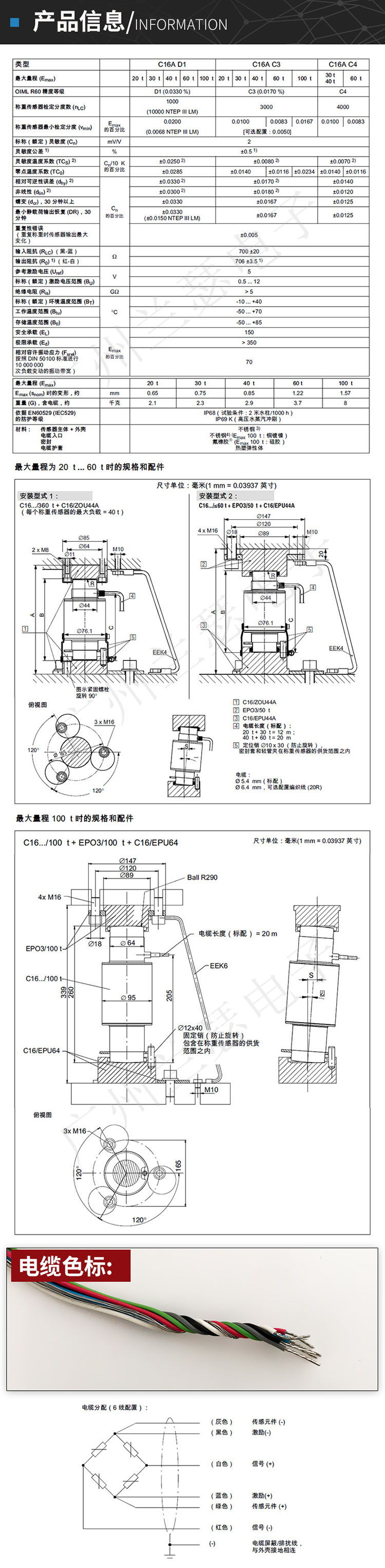 德國HBM C16AD1/60T稱重傳感器產(chǎn)品參數(shù):