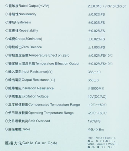 美國AC GX-4-5KLB稱重傳感器技術參數: