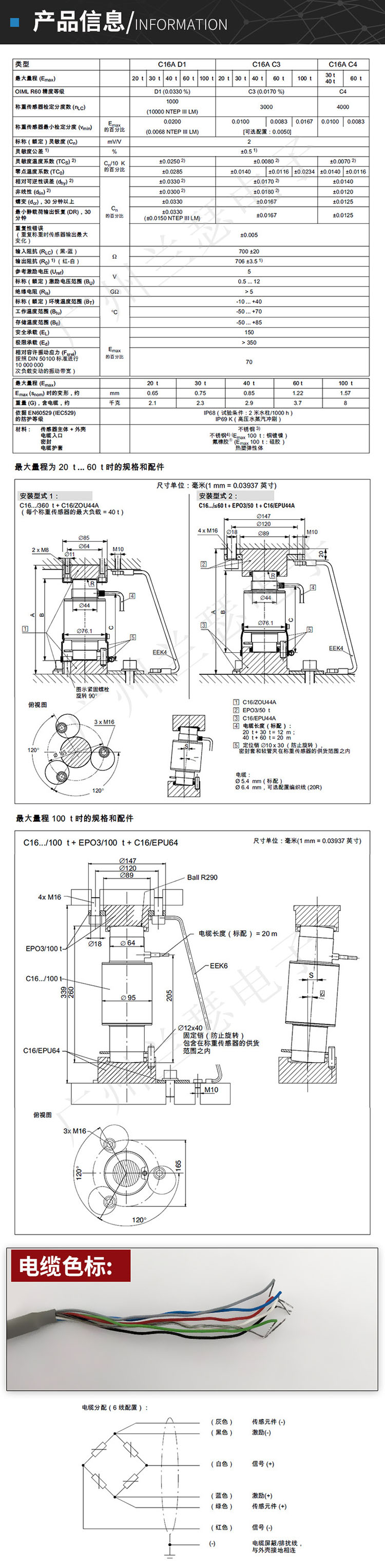 C16A 稱重傳感器量程為20到100t.