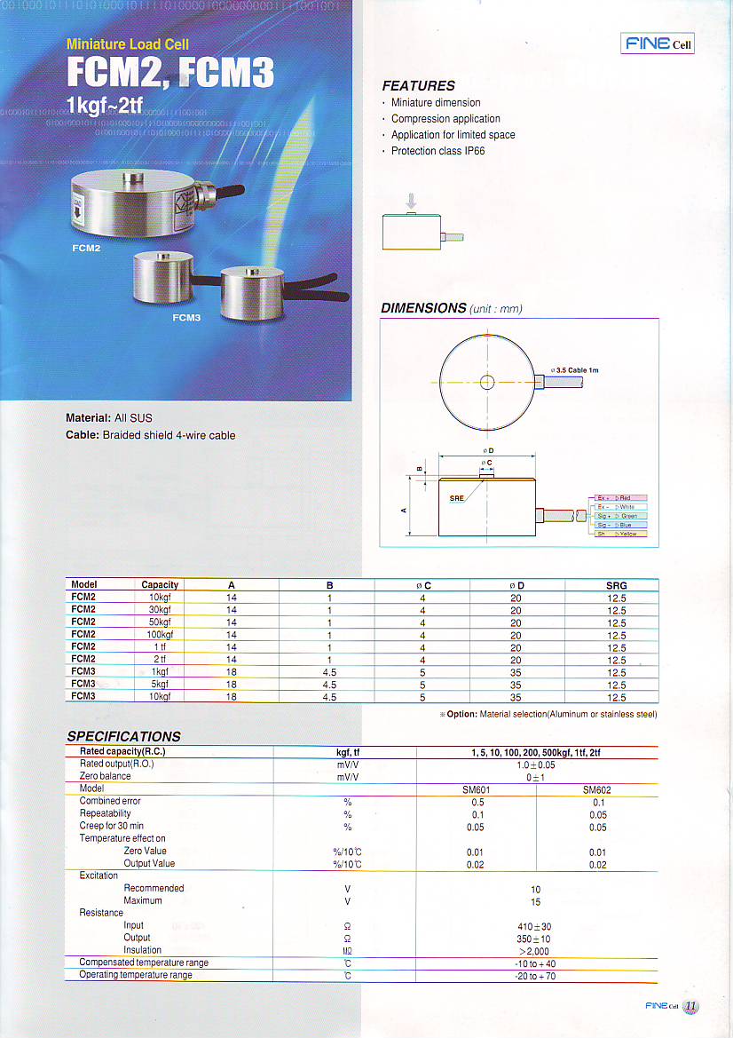 韓國Fine FCM2,FCM3稱重傳感器參數(shù):