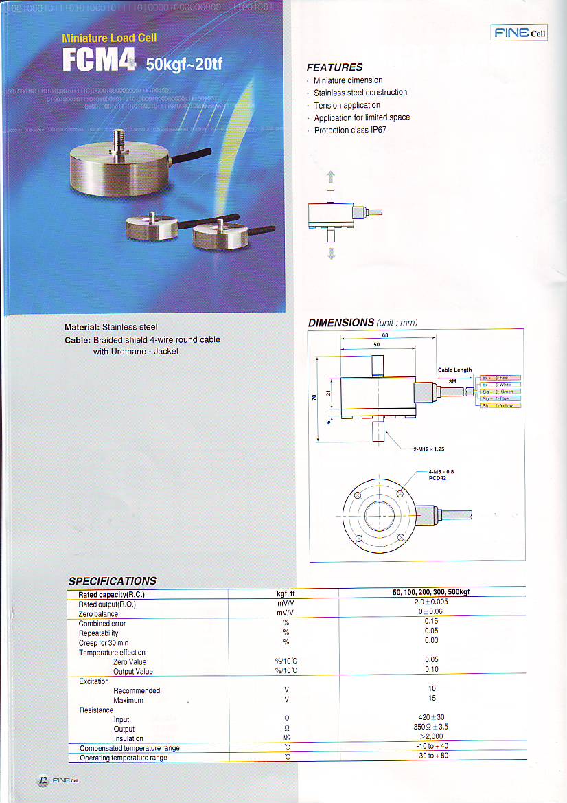 | FCM4微型傳感器,韓國FINE FCM4稱重傳感器(Loadcell) |