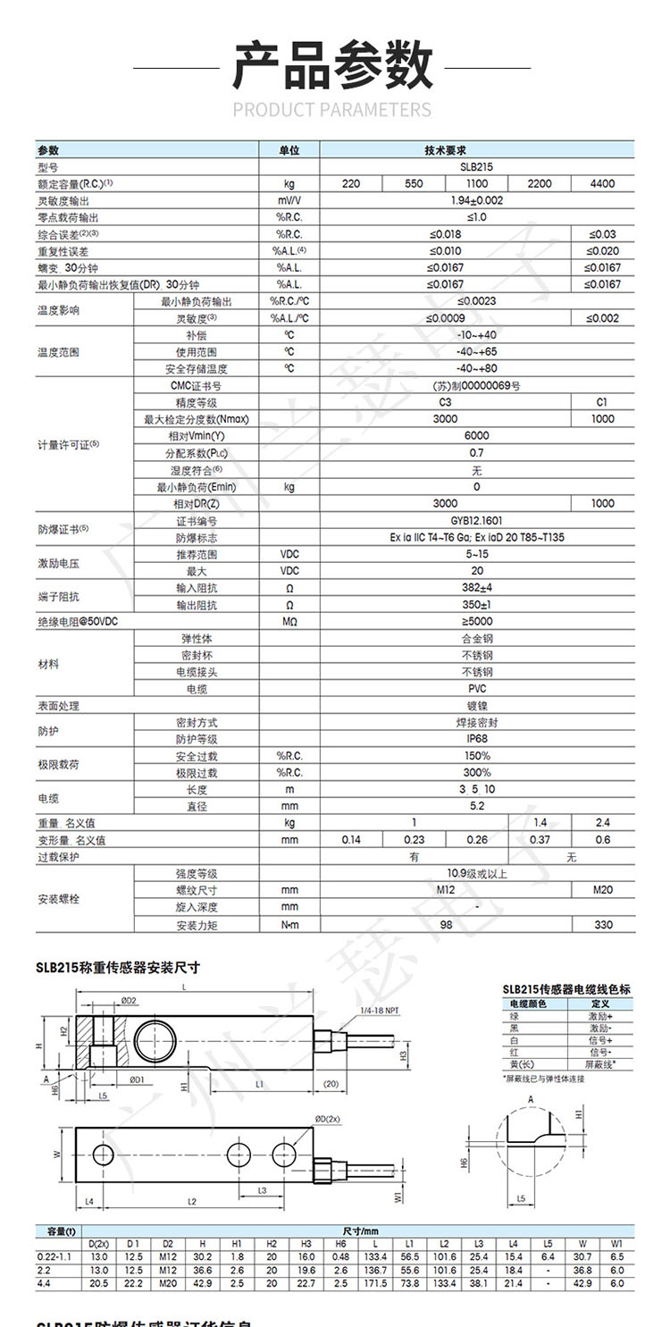 梅特勒托利多SLB215-2.2t稱重傳感器 10m CN