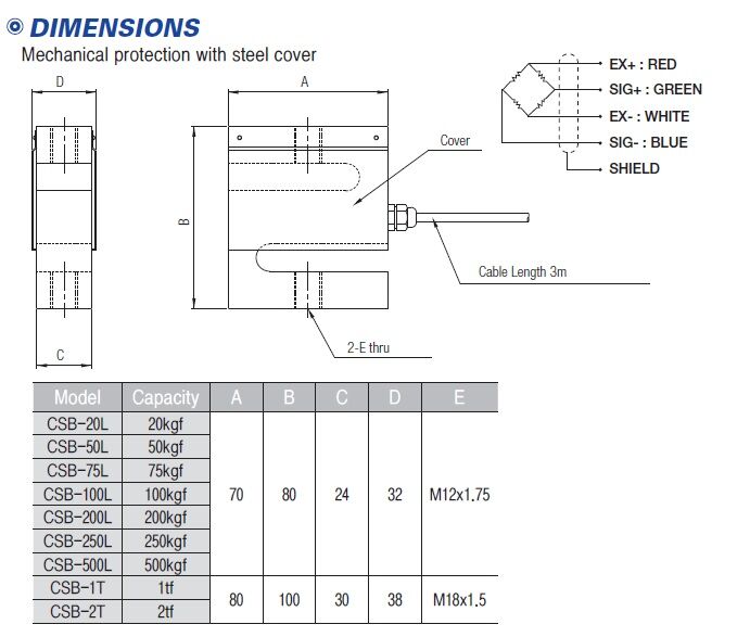 韓國CURIOSITY拉壓力S型CSB稱重傳感器采用鋁合金材質膠密封防護處理,安裝容易,使用方便,適用于吊秤,配料秤,機改秤等電子測力稱重系統(tǒng).額定載荷20kg,50kg,75kg,100kg,200kg,250kg,500kg,1t,2t