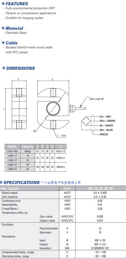 韓國CURIOSITY CSBS拉壓力稱重傳感器采用合金鋼,不銹鋼材質膠密封防護處理,安裝容易,使用方便,適用于吊秤,配料秤,機改秤等電子測力稱重系統(tǒng).額定載荷50kgf,100kgf,150kgf,200kgf,300kgf,500kgf,1tf,2tf,3tf,5tf,10tf。