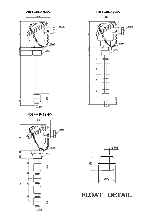 DLF是控制體積小坦克迷你浮球液位開(kāi)關(guān),在傳感器簧片開(kāi)關(guān)操作為浮子上下移動(dòng),其中安裝了一個(gè)永久磁鐵,這是一個(gè)使用通/斷信號(hào)從中繼級(jí)別開(kāi)關(guān)。DLF - 4P(點(diǎn))- 4S(STS)- GH(插座及缸蓋)是控制4 4花車每個(gè)接觸點(diǎn)液位開(kāi)關(guān)。根據(jù)用戶的選擇,它可以產(chǎn)生輸出最多4個(gè)觸點(diǎn)信號(hào)。