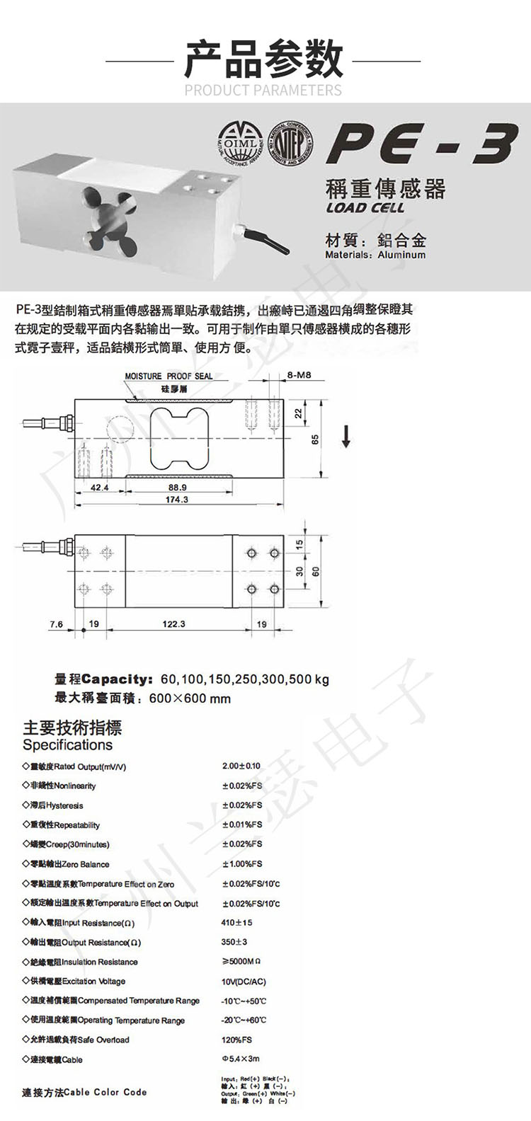 美國AC PE-3單點式稱重傳感器參數(shù):