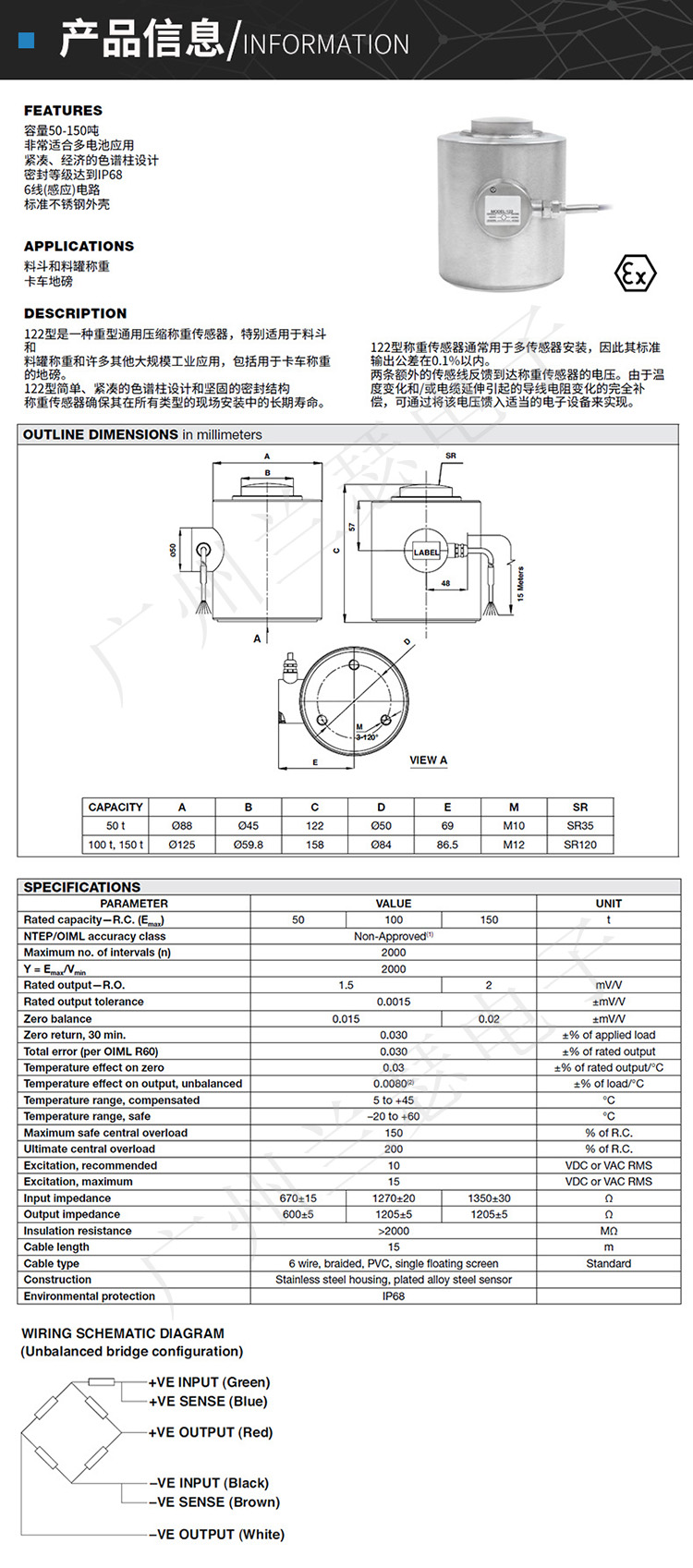 美國(guó)Tedea 122稱重傳感器產(chǎn)品參數(shù):