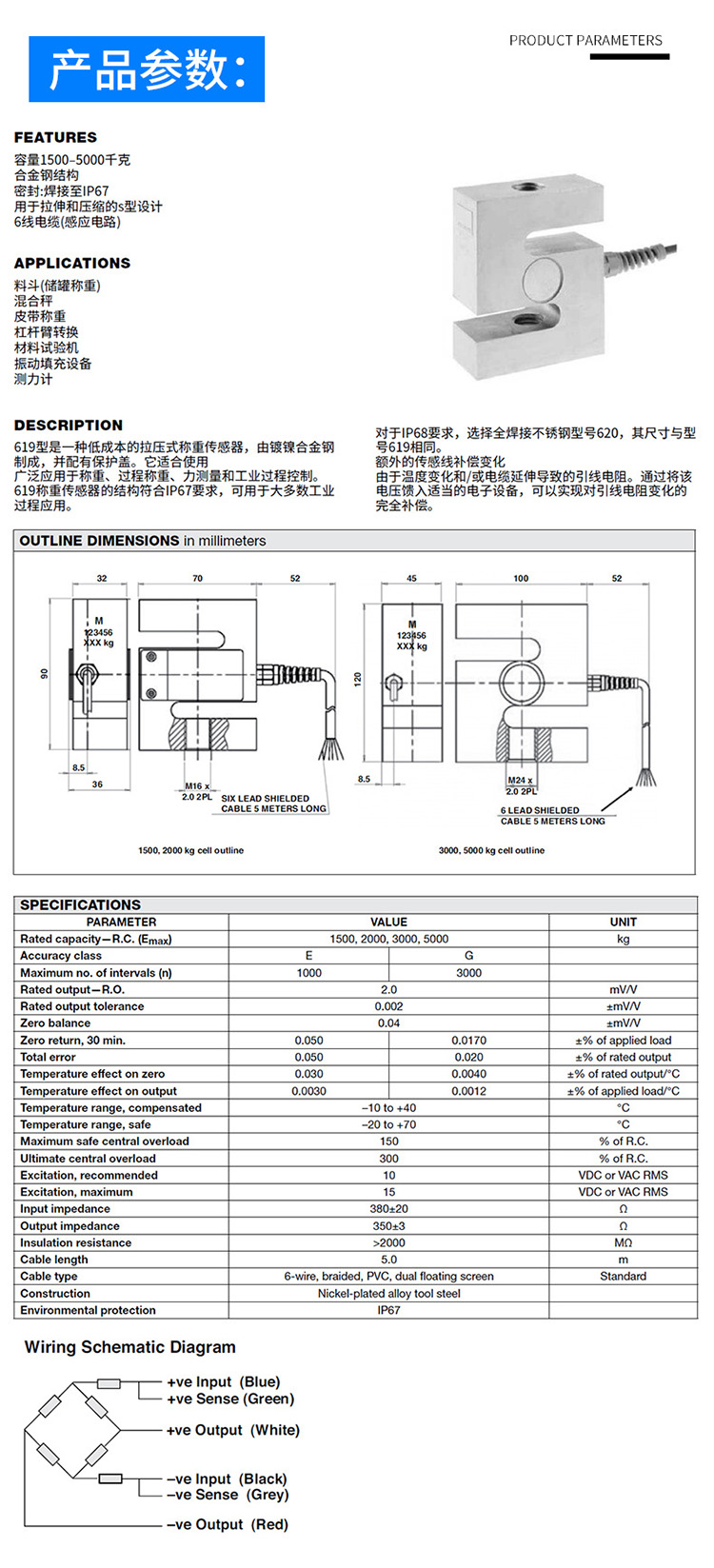 美國Tedea 619稱重傳感器產(chǎn)品參數(shù):