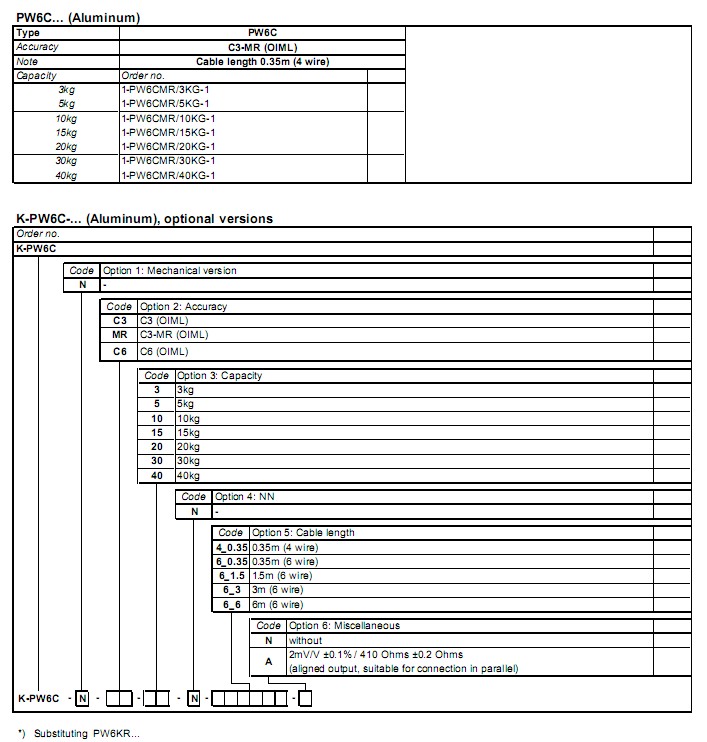 PW6C額定量程: 3 kg, 5 kg, 10 kg, 15 kg, 20 kg, 30 kg, 40 kg