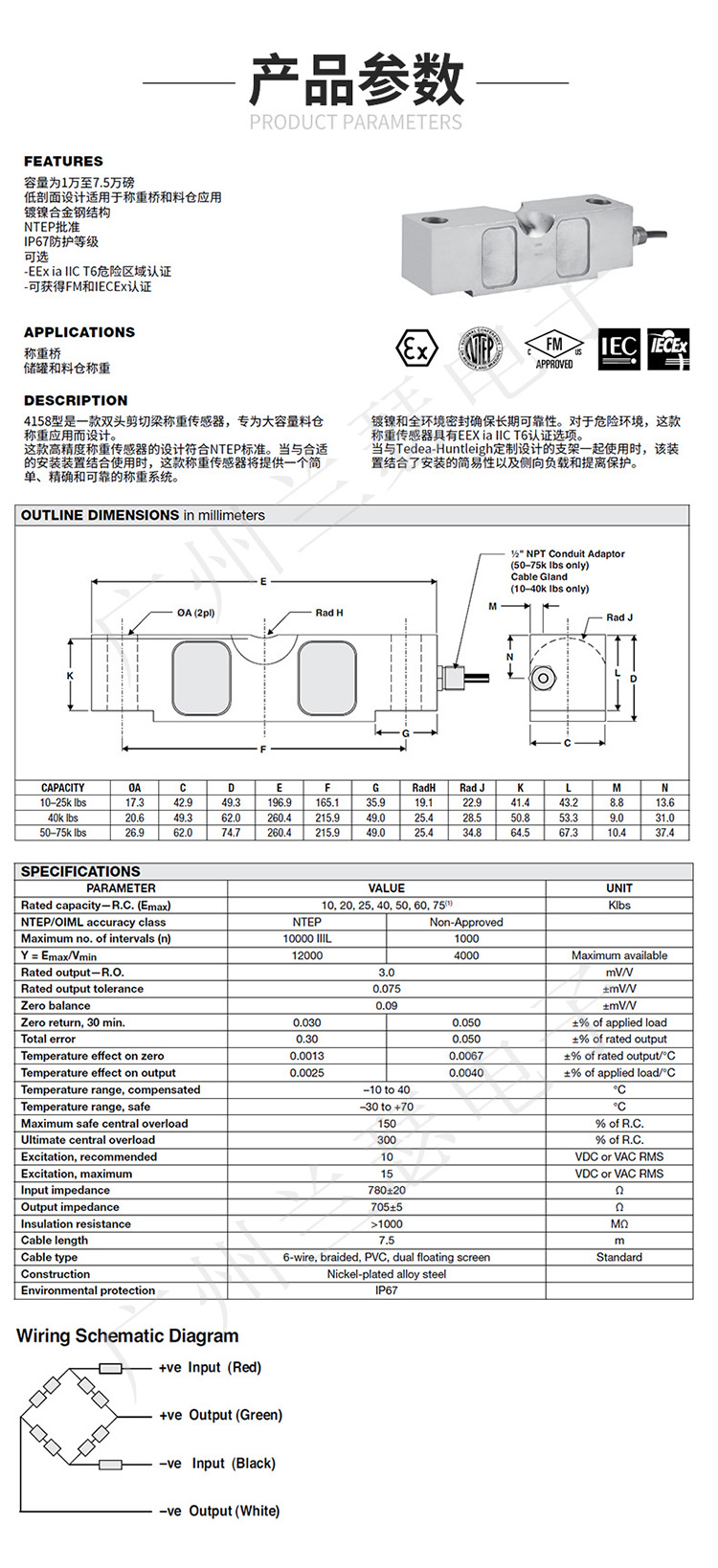美國(guó)Tedea 4158稱(chēng)重傳感器產(chǎn)品參數(shù):