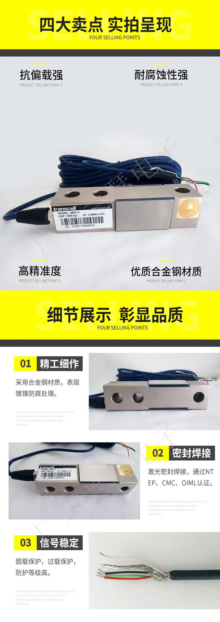 美國Transcell SBS-1T稱重傳感器產品實拍圖: