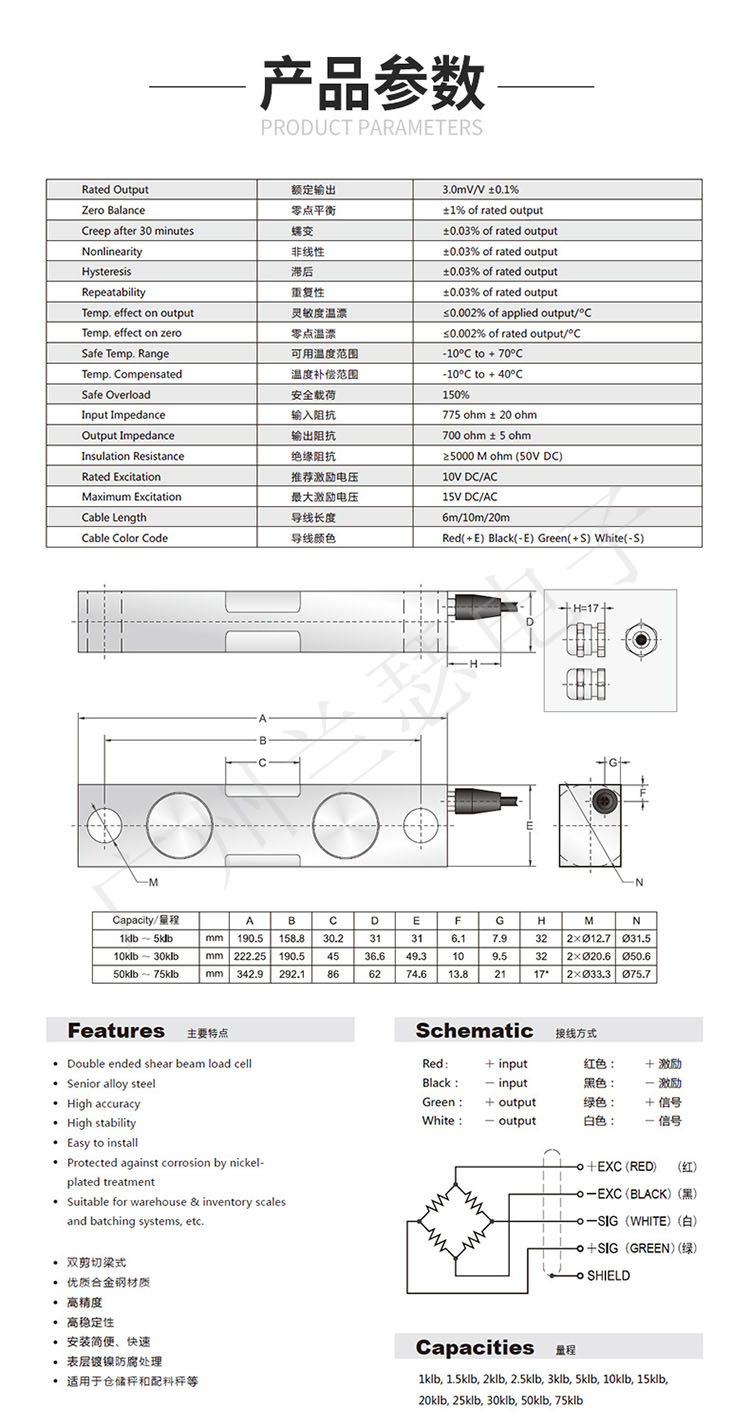 產(chǎn)品類(lèi)型:雙剪切梁式稱(chēng)重傳感器