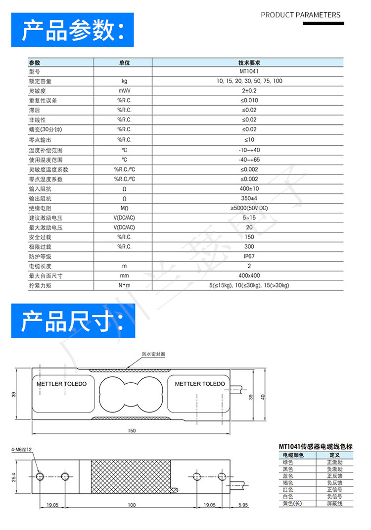 注:MT1041-10是梅特勒-托利多傳感器中容量為10kg,那么型號(hào)就是MT1041-10。以止類(lèi)推得到MT1041系列的所有型號(hào)。