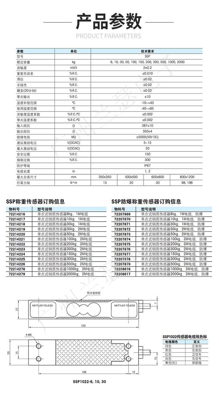 Mettler toledo稱重傳感器SSP1022-10kg所有型號: