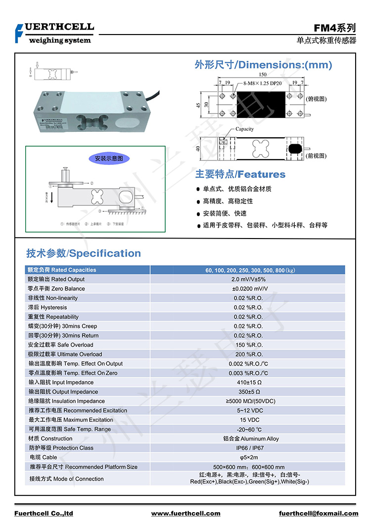 美國(guó)FUERTHCELL FM4-60KG稱(chēng)重傳感器產(chǎn)品參數(shù):