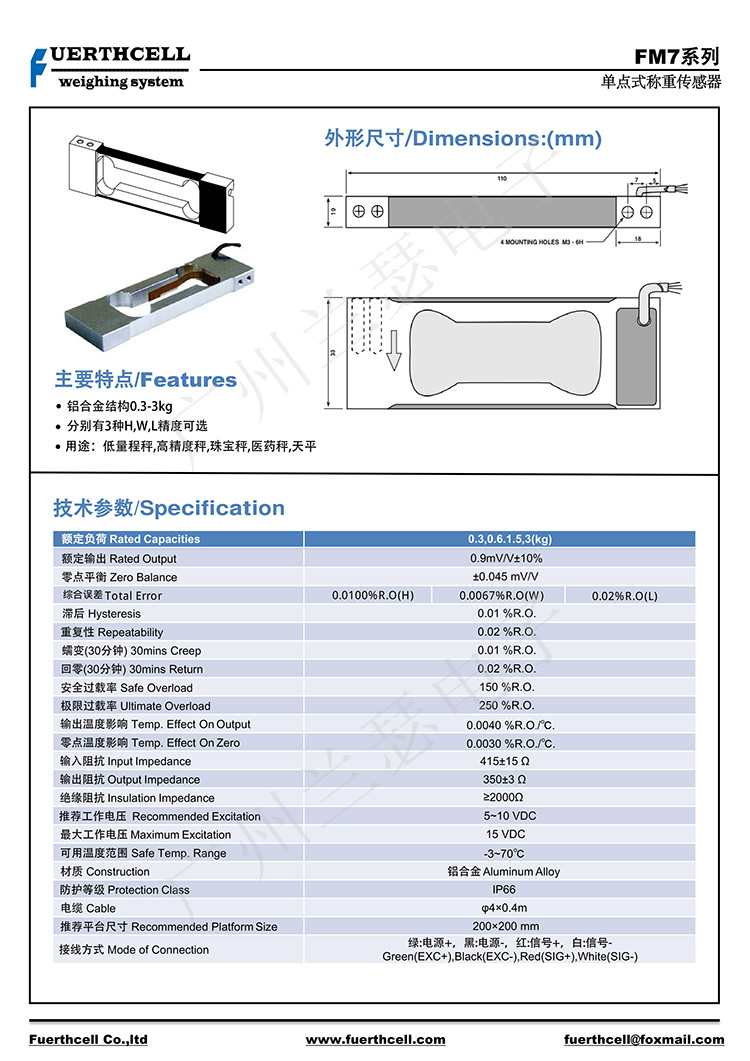 美國FUERTHCELL FM7-0.3KG稱重傳感器產品參數(shù):