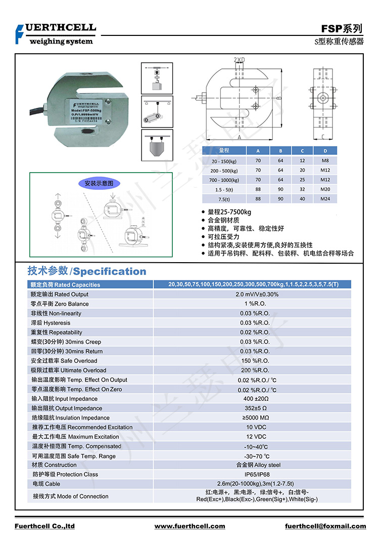美國FUERTHCELL FSP-500kg稱重傳感器產(chǎn)品參數(shù):