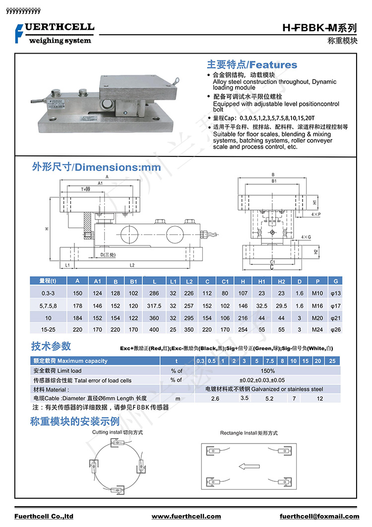 美國(guó)FUERTHCELL FBBK-750KG稱重模塊產(chǎn)品參數(shù):