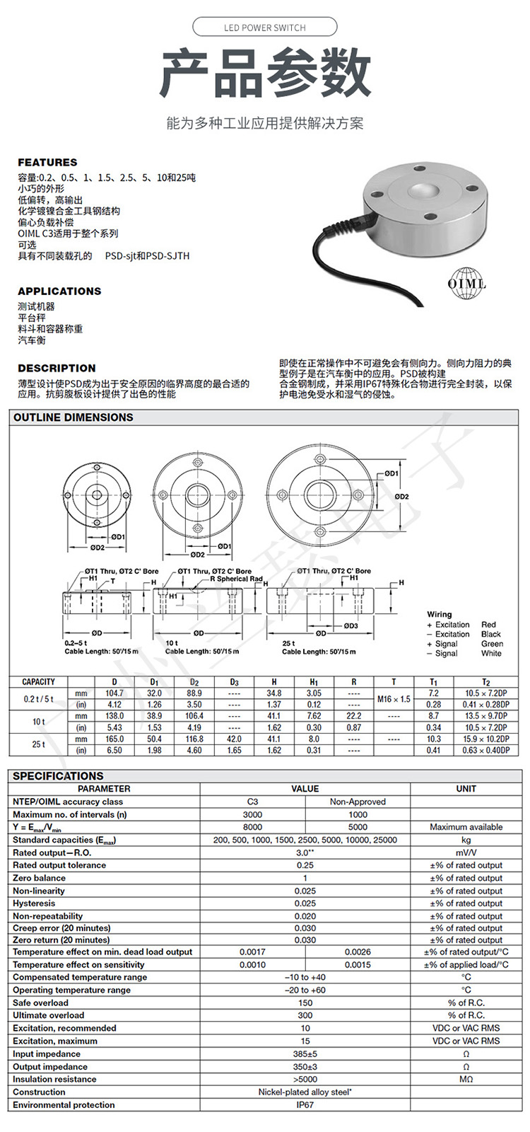 美國Celtron PSD-5t稱重傳感器產(chǎn)品參數(shù):