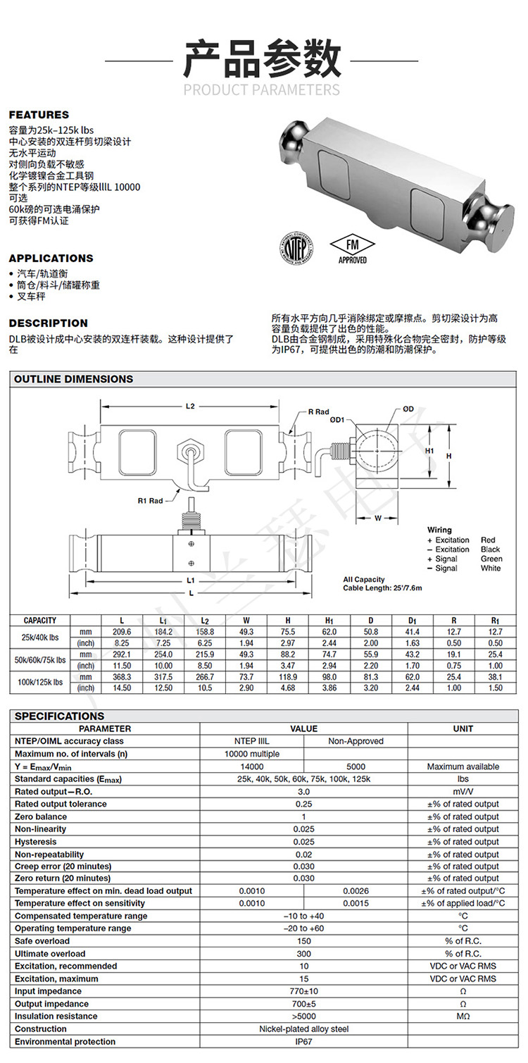 Celtron DLB-75KLB稱重傳感器應(yīng)用:車輛/鐵路稱重用,筒倉(cāng)、漏斗、箱灌等稱重用,叉車秤