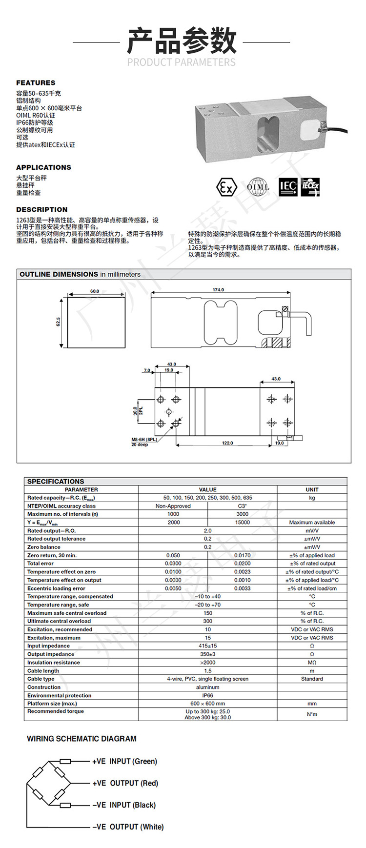 特迪亞1263-50kg稱重傳感器技術參數(shù)圖: