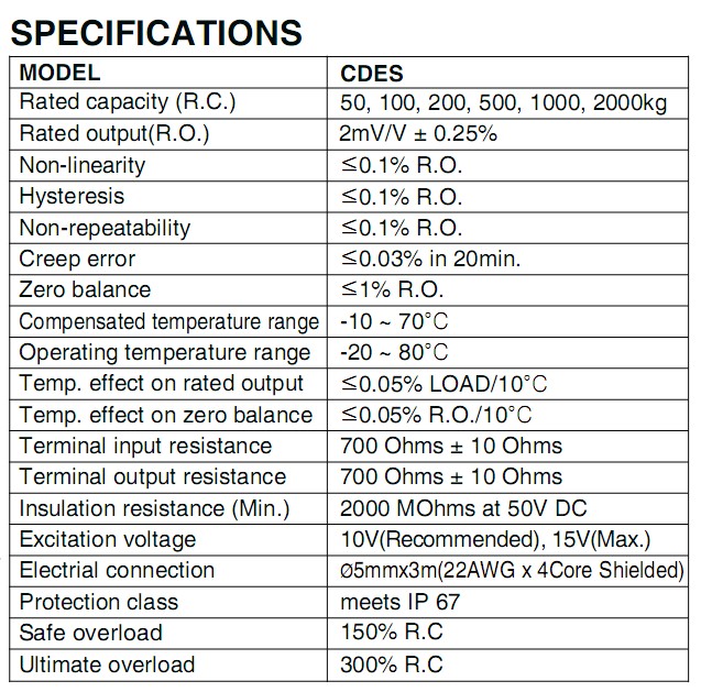 CDES-50KG,CDES-50KG稱重傳感器,Bongshin CDES-50KG傳感器主要特性: