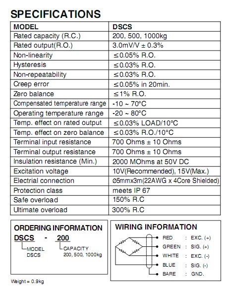 DSCS-200KG,DSCS-500KG,DSCS-1000KG稱重傳感器主要特性: