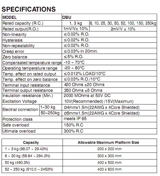 韓國(guó)BONGSHIN OBU稱(chēng)重傳感器主要特性: