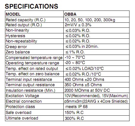 OBBA-10kg,OBBA-20kg,OBBA-50kg稱重傳感器主要特性: