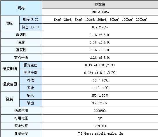 韓國Dacell UMM-1kgf稱重傳感器主要特性:
