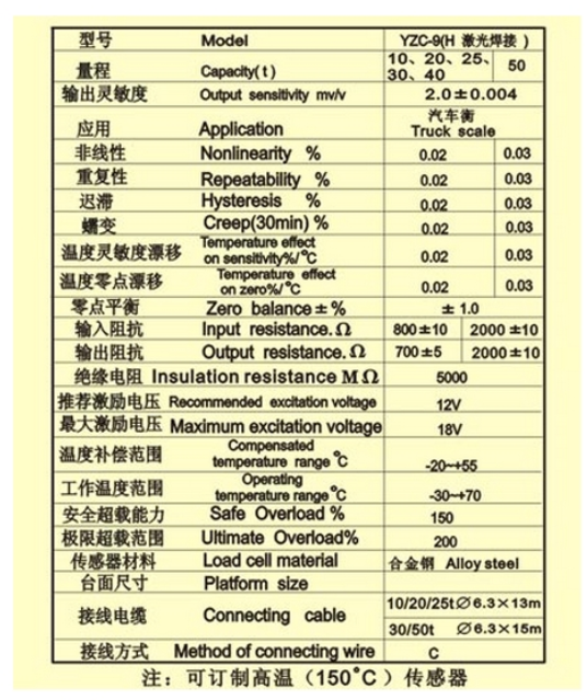 廣測(cè)GUANGCE YZC-9稱(chēng)重傳感器技術(shù)參數(shù)