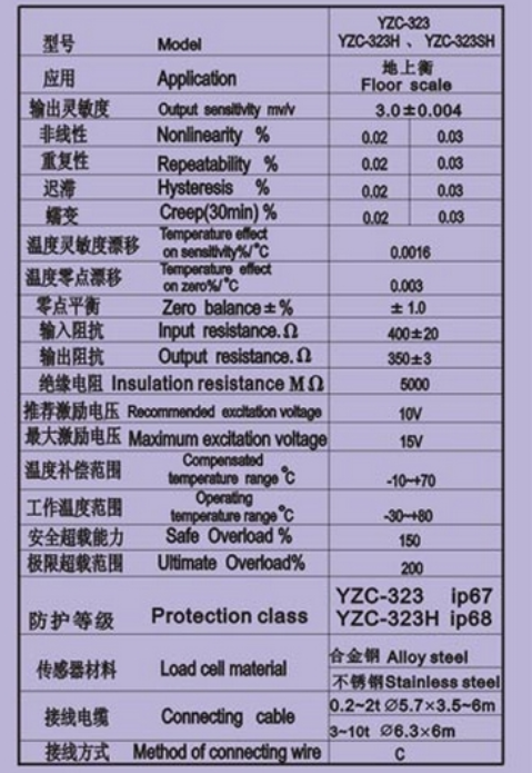 廣測(cè)GUANGCE YZC-323稱(chēng)重傳感器技術(shù)參數(shù)