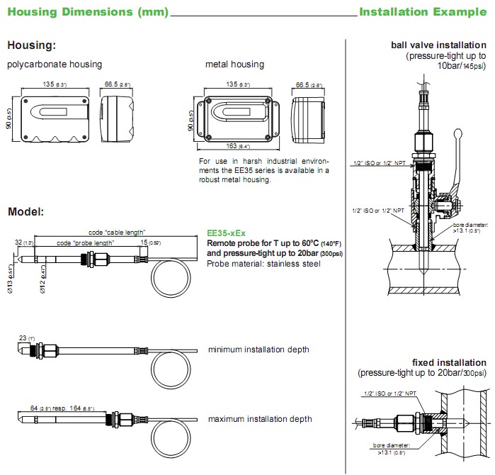 奧地利E+E EE35溫濕度變送器參數(shù):