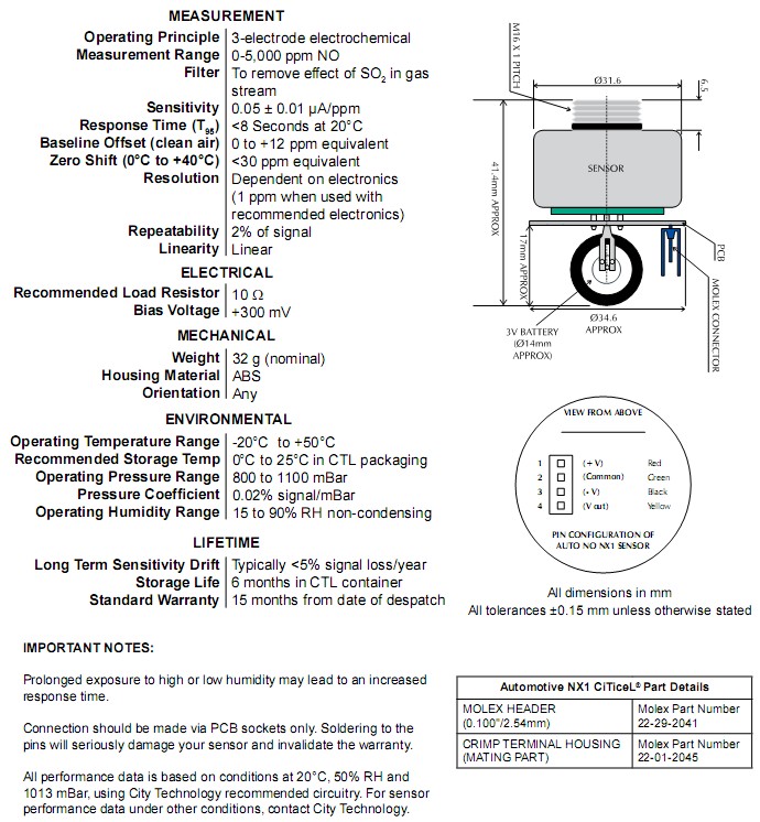 CiTiceL電化學(xué)氣體傳感器是密封元件,在正常使用下沒有化學(xué)危險性。