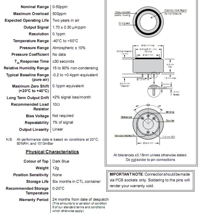 CiTiceL電化學(xué)氣體傳感器是密封元件,在正常使用下沒有化學(xué)危險(xiǎn)性。